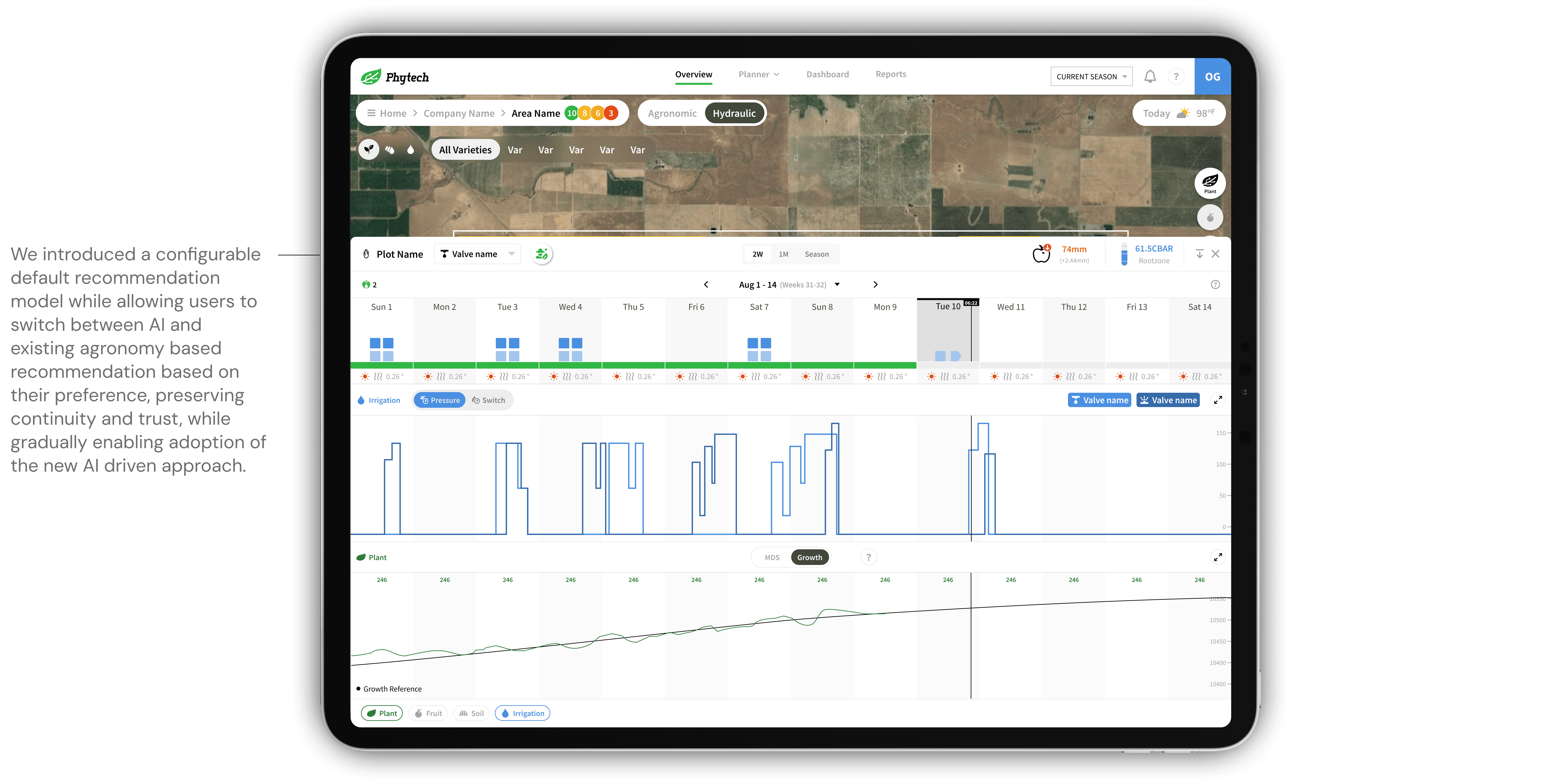 Phytech’s platform includes multiple layers of agronomic data. Adding another information stream, especially one as influential as AI, risked overwhelming growers, many of whom already struggle with digital complexity.